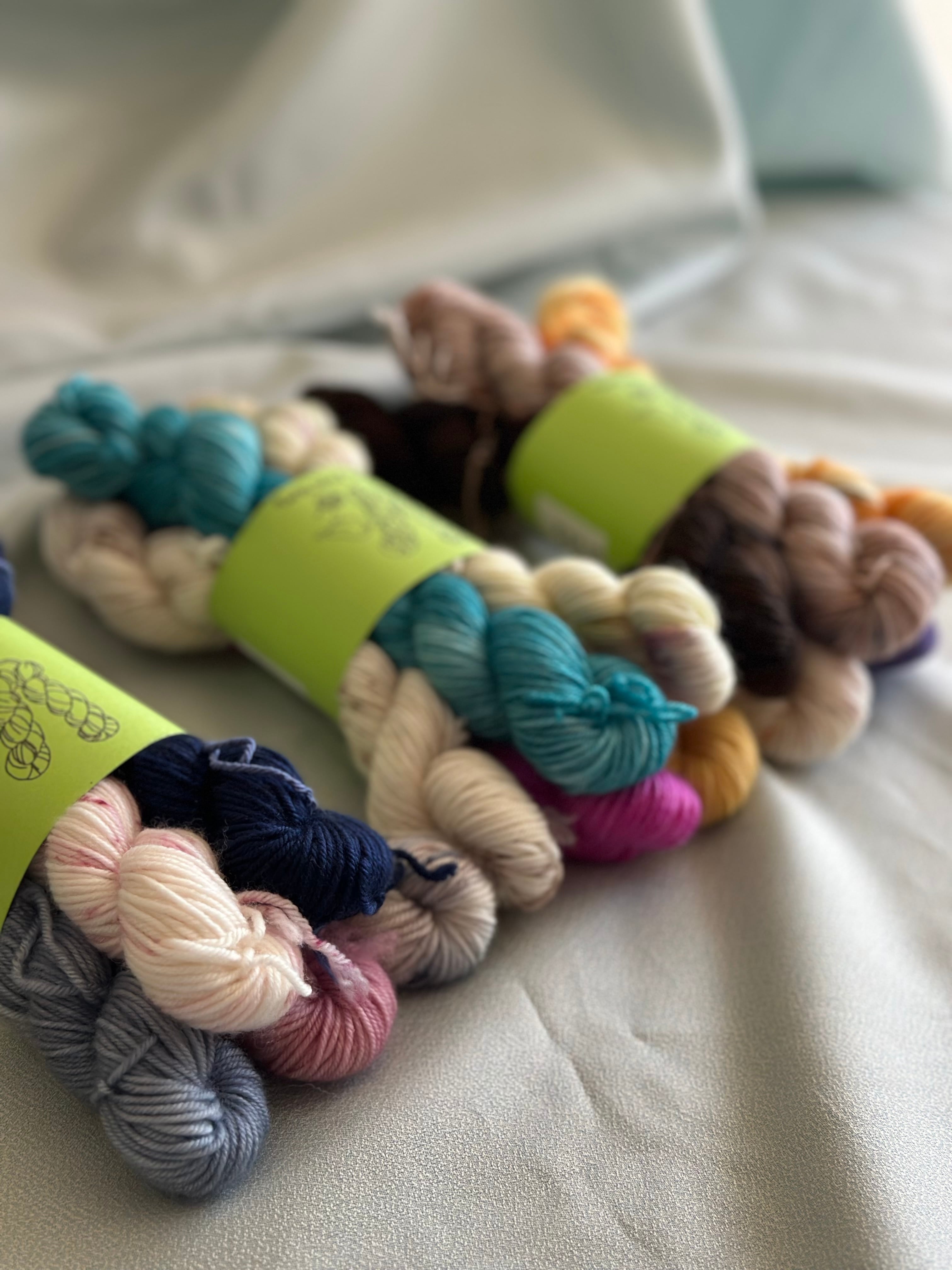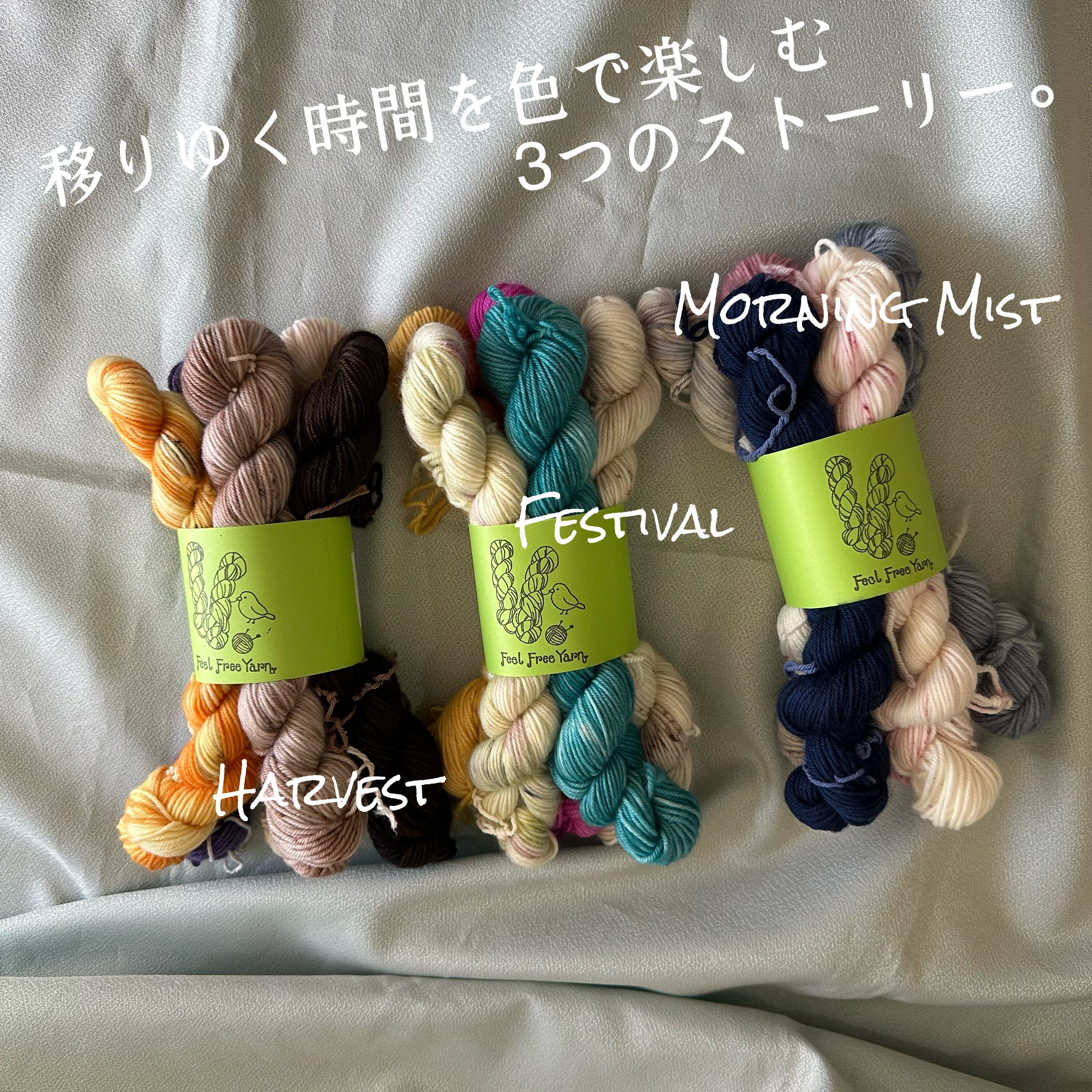 一日の流れをイメージした3種類のミニ綛セットです。